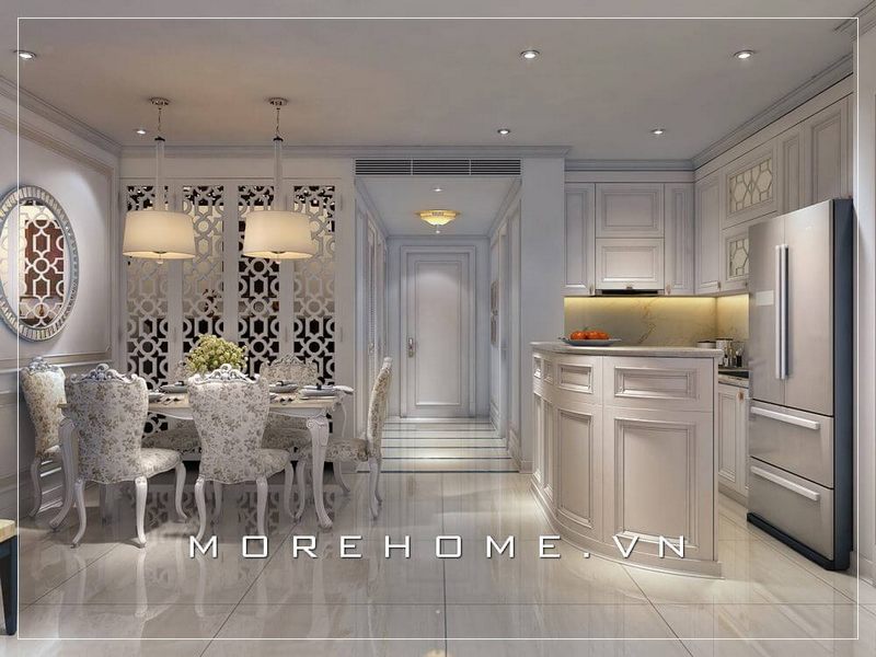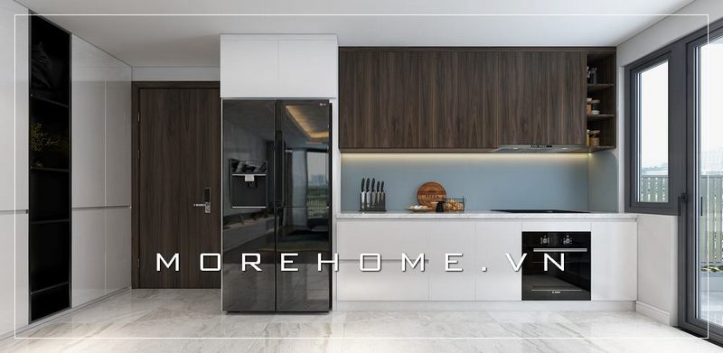 Những gam màu sáng như trắng, be hay pastel có khả năng phản chiếu ánh sáng tự nhiên, làm cho căn bếp của bạn trở nên thoáng đãng và dễ chịu. Bên cạnh đó, việc kết hợp các màu sắc này với những điểm nhấn mạnh mẽ như đen hoặc xanh navy sẽ tạo ra chiều sâu, giúp không gian thêm phần ấn tượng mà không bị chật chội.